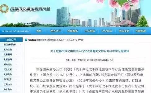 成都发布《成都市网络预约出租汽车经营服务管理实施细则》(征求意见稿)。